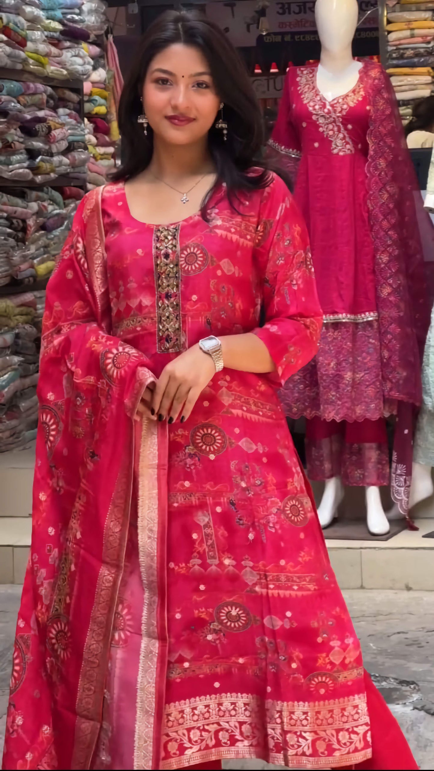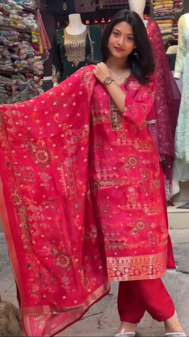 - Elegant and Festive: This stunning red silk suit set is perfect for special occasions. The intricate cutdana and mirror work create a dazzling and luxurious look.