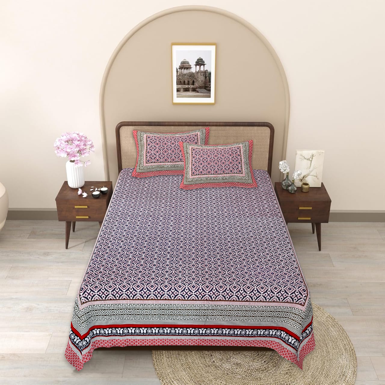 Upgrade your bedroom with this premium-quality cotton bedsheet set, complete with a stitched bedsheet and two zipped pillow covers. Crafted for comfort and durability, this set offers a soft, breathable experience perfect for restful nights.