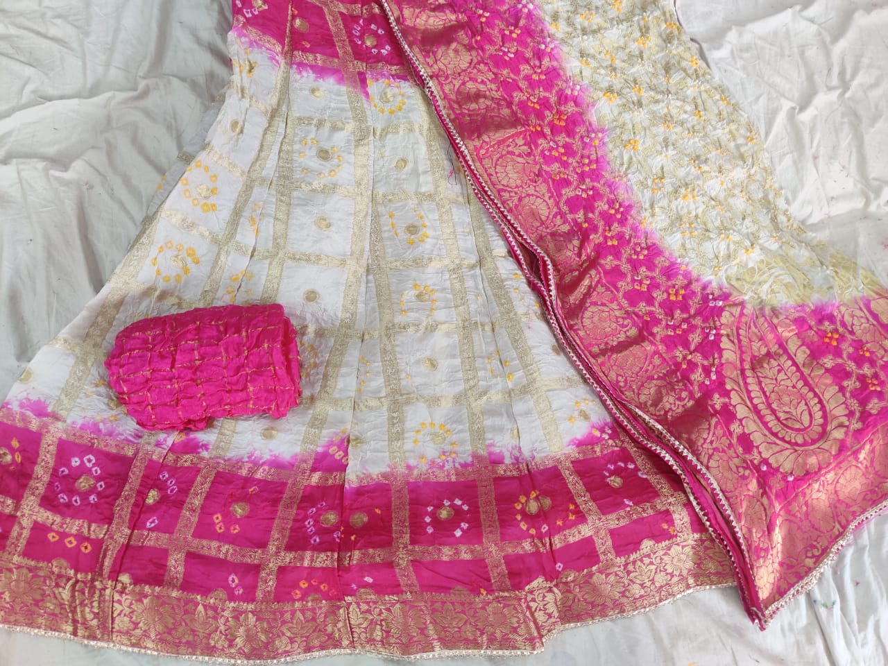 Banarasi Gharchola Silk Lehenga Set with Bandhani Design, Zari Blouse, and Dupatta – Stitched with Touch Aster