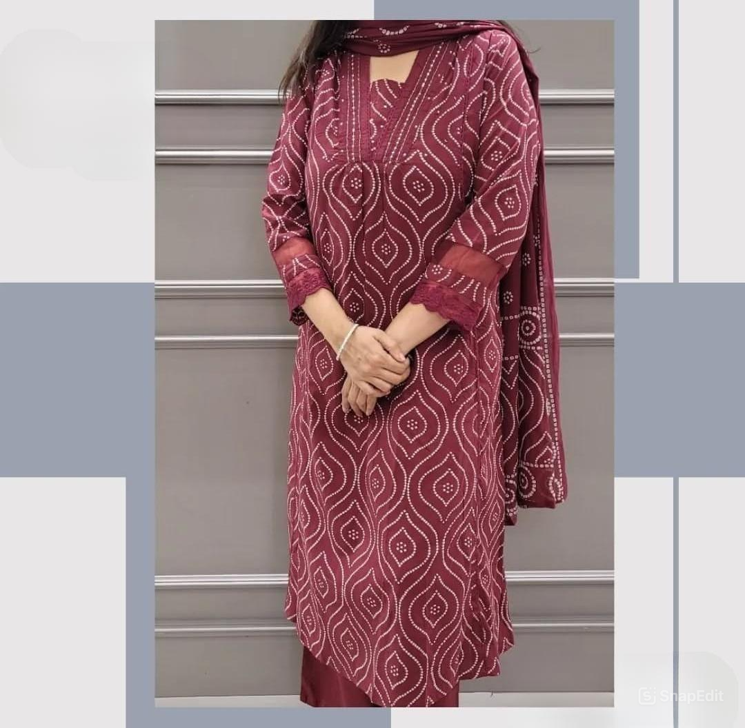 - Includes: Kurti, a matching cotton pant, and a lightweight malmal dupatta.