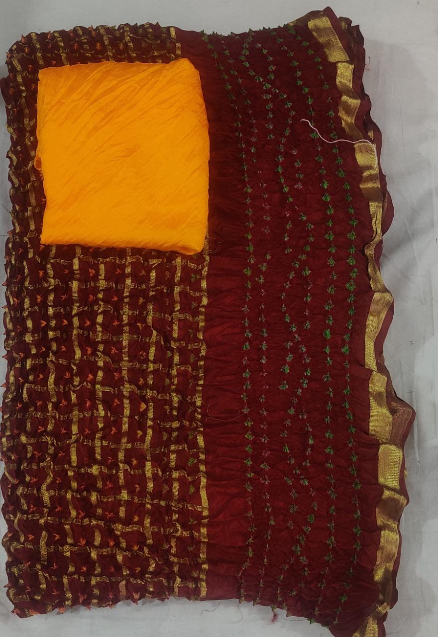Bandhej Ghadchola Silk Saree with Zari Border and Contrast Blouse