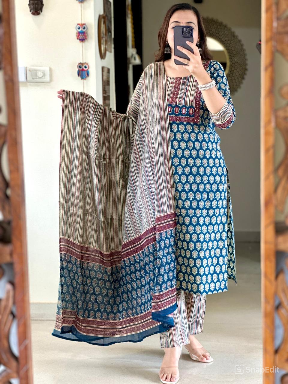 Cotton Kurti Set with Pant & Dupatta | Mirror Work | Fully Stitched