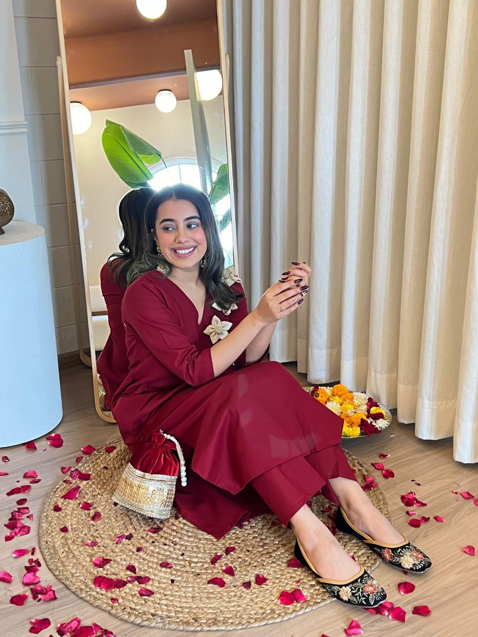 Jute Flower Embroidery – Delicately crafted detail on the side for an elegant touch