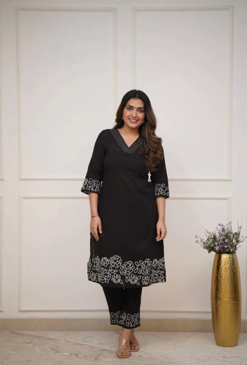 Upgrade your ethnic collection with this chic embroidered kurti with pant – a must-have for fashion-forward women who love comfort and style!