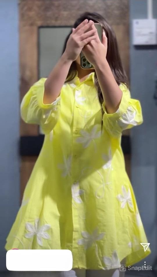 This ensemble combines the comfort of cotton with the elegance of Aari embroidery and the trendy appeal of bell bottom pant. Whether you're looking for a stylish everyday outfit or something special for an event, this set is sure to impress.