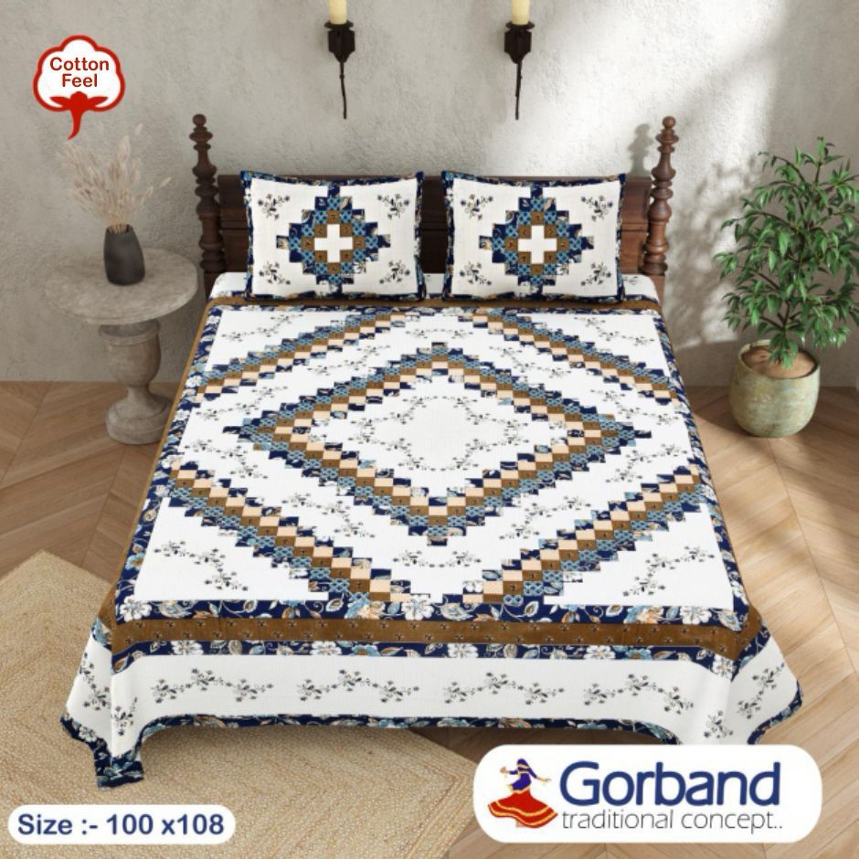 Transform your bedroom into a haven of comfort with our premium cotton king-size bedsheet set. This set includes a generously sized 100x108 inch bedsheet and two matching pillow covers, providing a perfect blend of softness and breathability for a restful night's sleep.