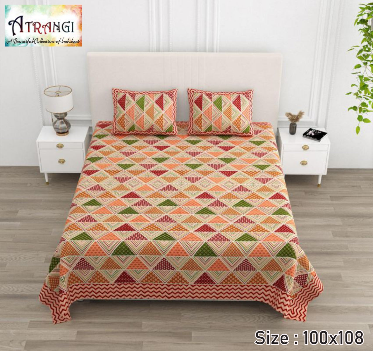Transform your bedroom into a haven of comfort with our premium cotton king-size bedsheet set. This set includes a generously sized 100x108 inch bedsheet and two matching pillow covers, providing a perfect blend of softness and breathability for a restful night's sleep.