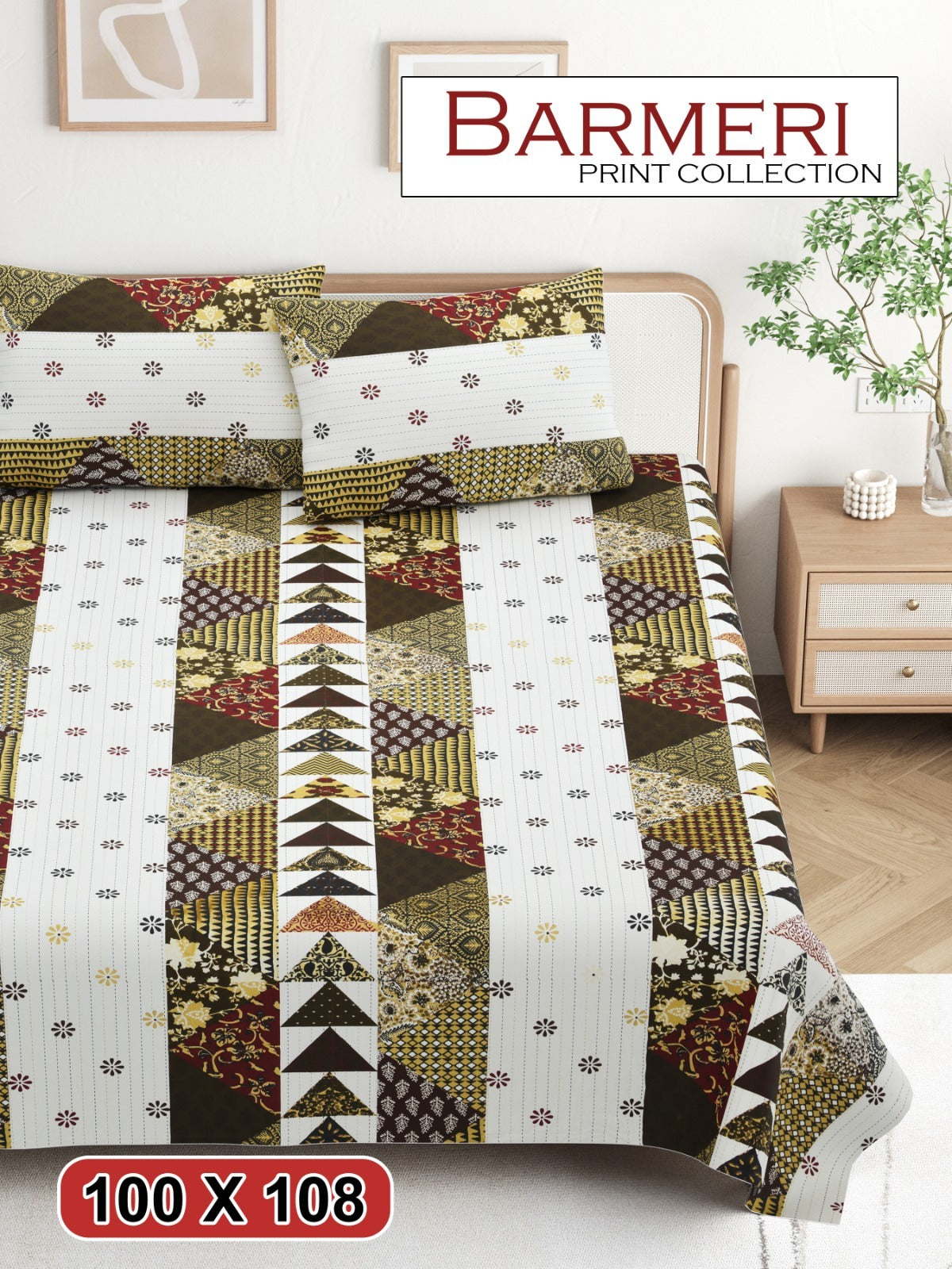 Transform your bedroom into a haven of comfort with our premium cotton king-size bedsheet set. This set includes a generously sized 100x108 inch bedsheet and two matching pillow covers, providing a perfect blend of softness and breathability for a restful night's sleep.