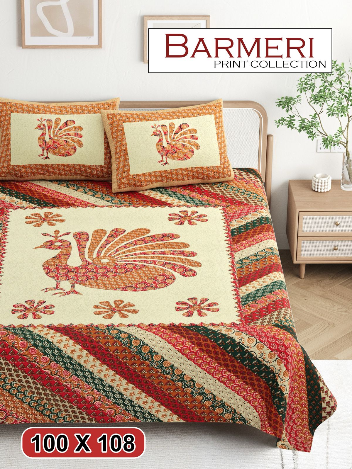 Transform your bedroom into a haven of comfort with our premium cotton king-size bedsheet set. This set includes a generously sized 100x108 inch bedsheet and two matching pillow covers, providing a perfect blend of softness and breathability for a restful night's sleep.
