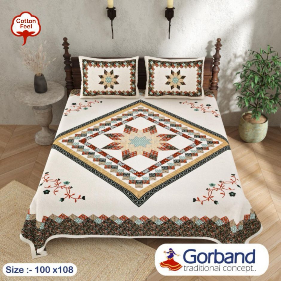 Transform your bedroom into a haven of comfort with our premium cotton king-size bedsheet set. This set includes a generously sized 100x108 inch bedsheet and two matching pillow covers, providing a perfect blend of softness and breathability for a restful night's sleep.