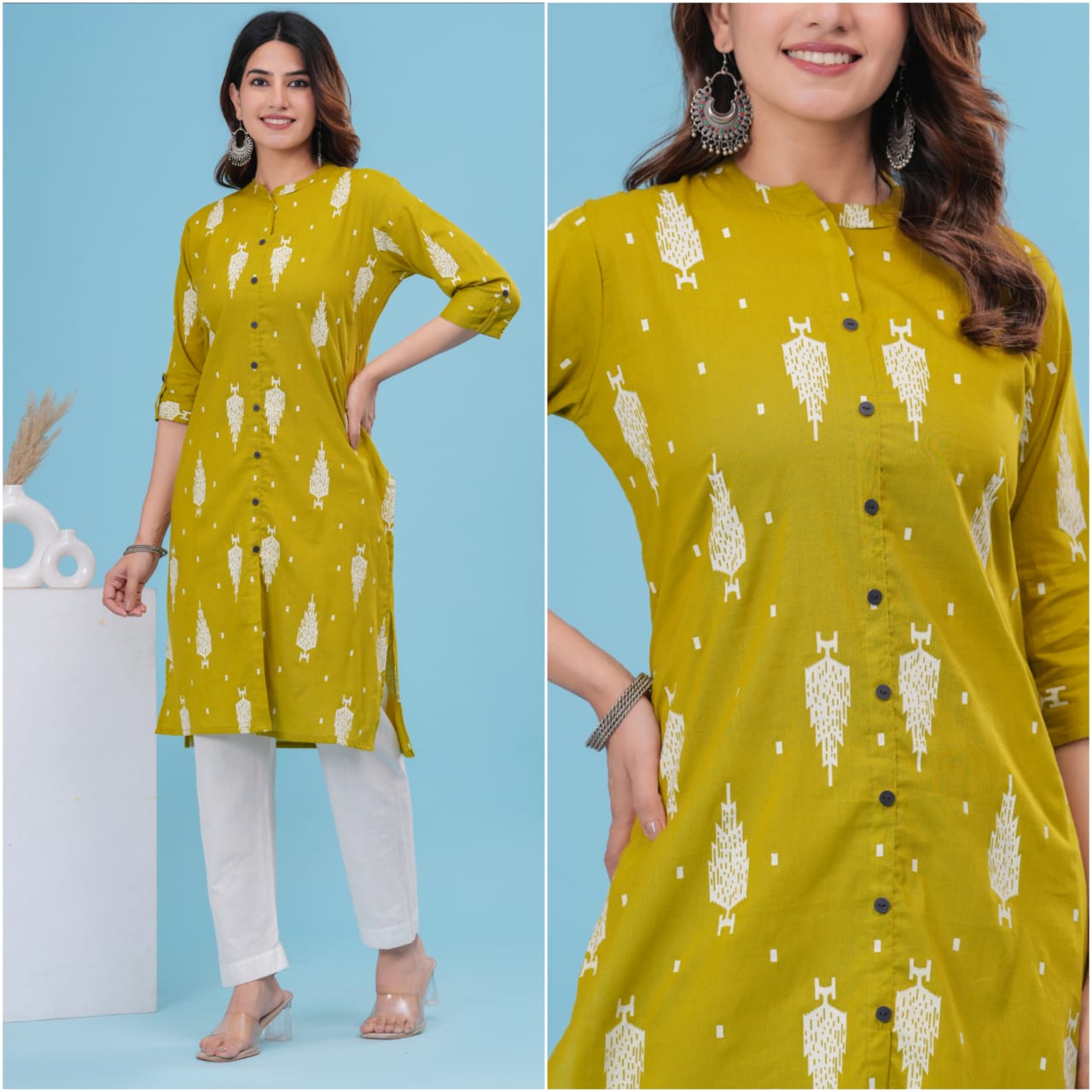 Elevate your everyday style or add a touch of grace to casual outings with our beautifully designed Printed Cotton Straight Kurti. Crafted from cotton, this kurti promises exceptional comfort and breathability, making it ideal for all seasons, especially warmer weather. The classic straight cut offers a flattering silhouette for various body types, while the vibrant print adds a dash of personality and charm. At a versatile 42-inch length, it pairs perfectly with leggings, palazzos, or even jeans for a contemporary ethnic look.