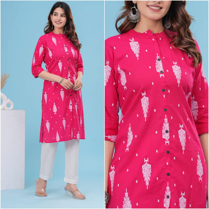 Elevate your everyday style or add a touch of grace to casual outings with our beautifully designed Printed Cotton Straight Kurti. Crafted from cotton, this kurti promises exceptional comfort and breathability, making it ideal for all seasons, especially warmer weather. The classic straight cut offers a flattering silhouette for various body types, while the vibrant print adds a dash of personality and charm. At a versatile 42-inch length, it pairs perfectly with leggings, palazzos, or even jeans for a contemporary ethnic look.