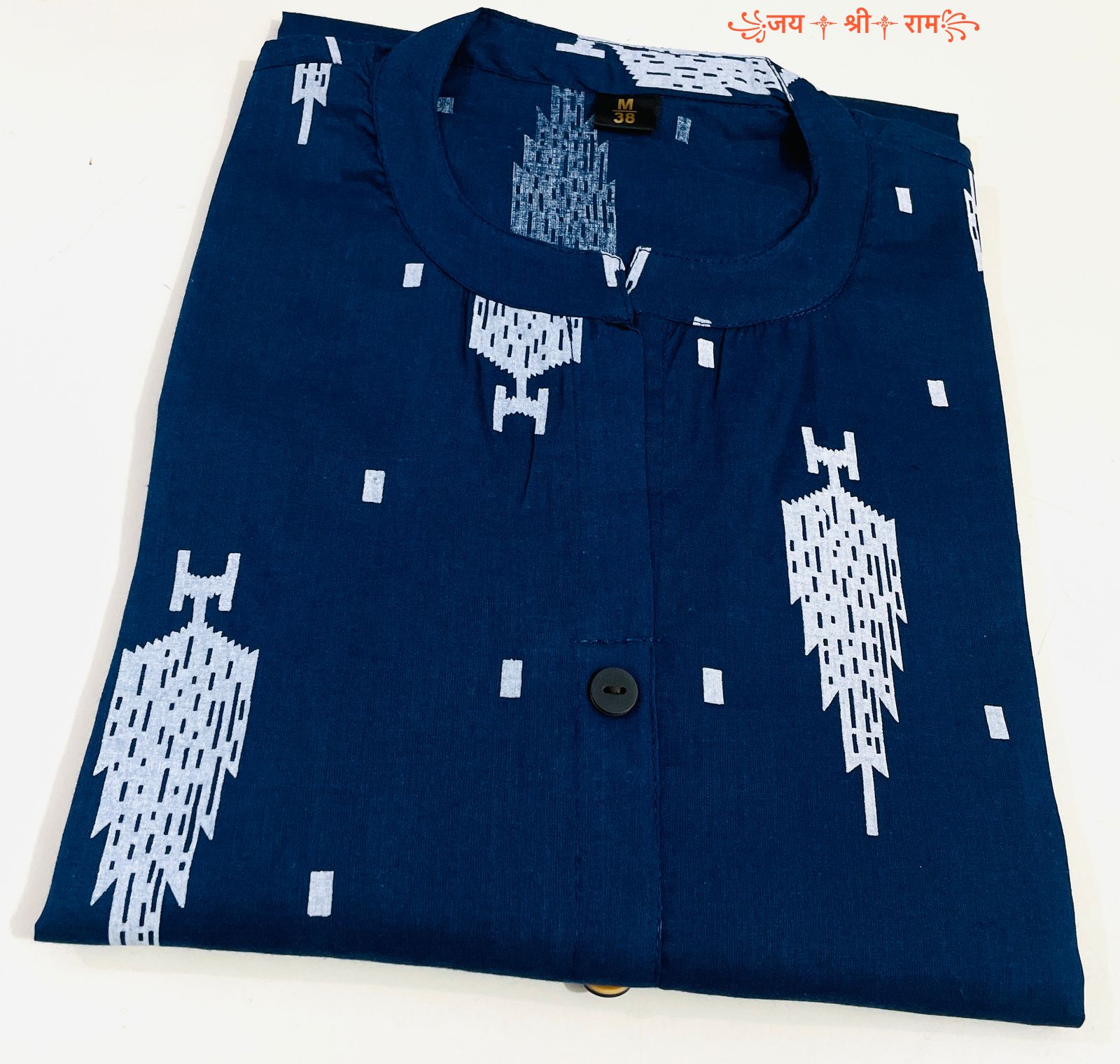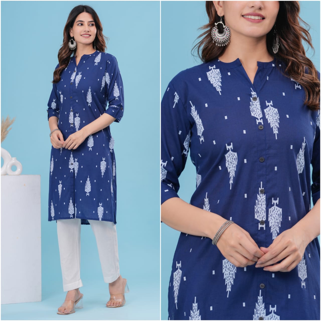 Elevate your everyday style or add a touch of grace to casual outings with our beautifully designed Printed Cotton Straight Kurti. Crafted from cotton, this kurti promises exceptional comfort and breathability, making it ideal for all seasons, especially warmer weather. The classic straight cut offers a flattering silhouette for various body types, while the vibrant print adds a dash of personality and charm. At a versatile 42-inch length, it pairs perfectly with leggings, palazzos, or even jeans for a contemporary ethnic look.