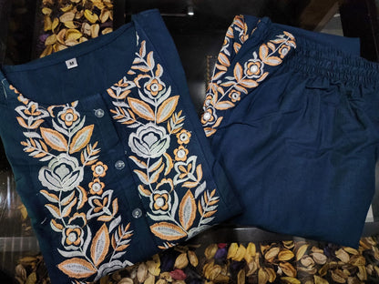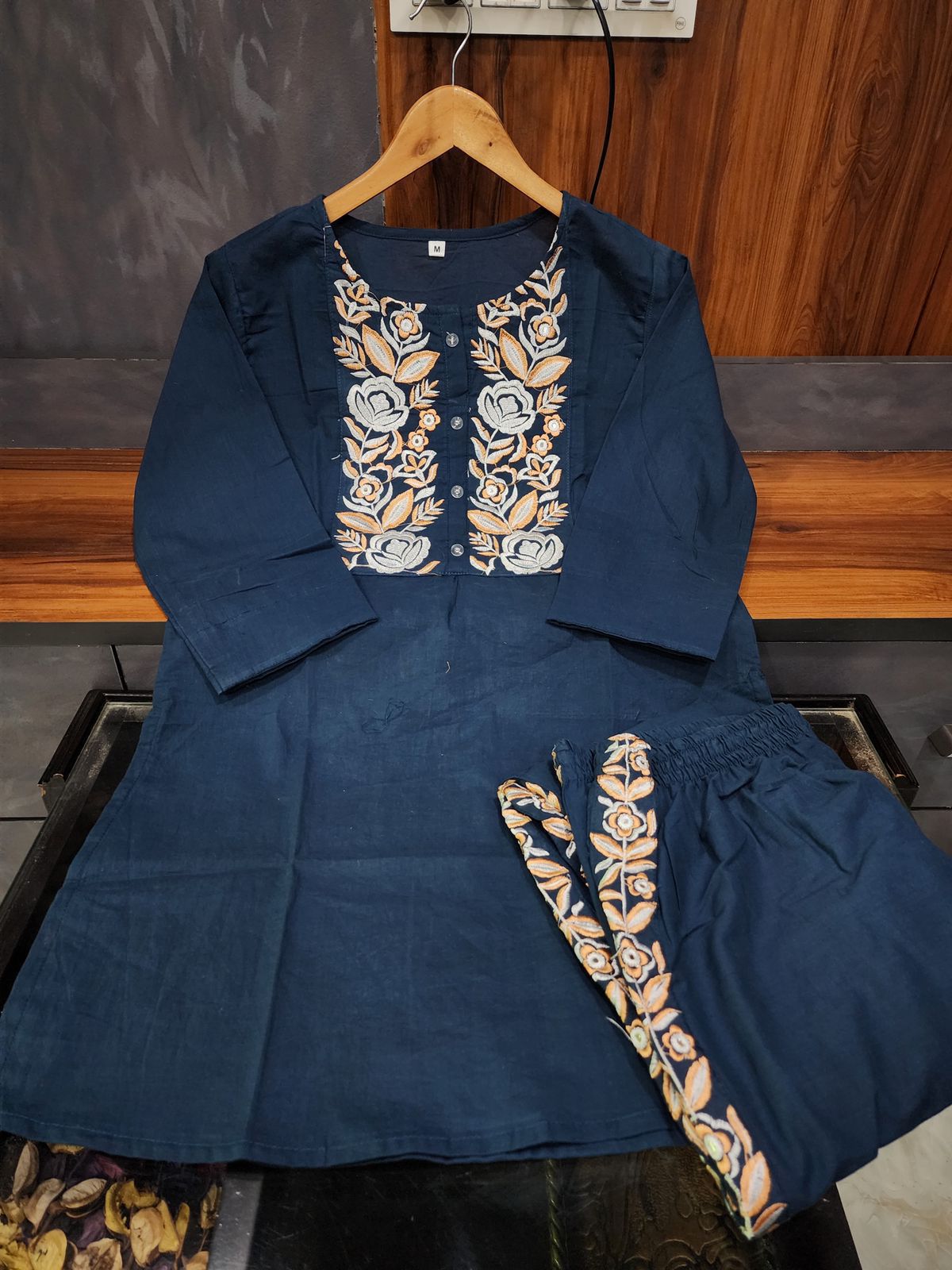 Embroidered Cotton Kurti & Pant Co-ord Set