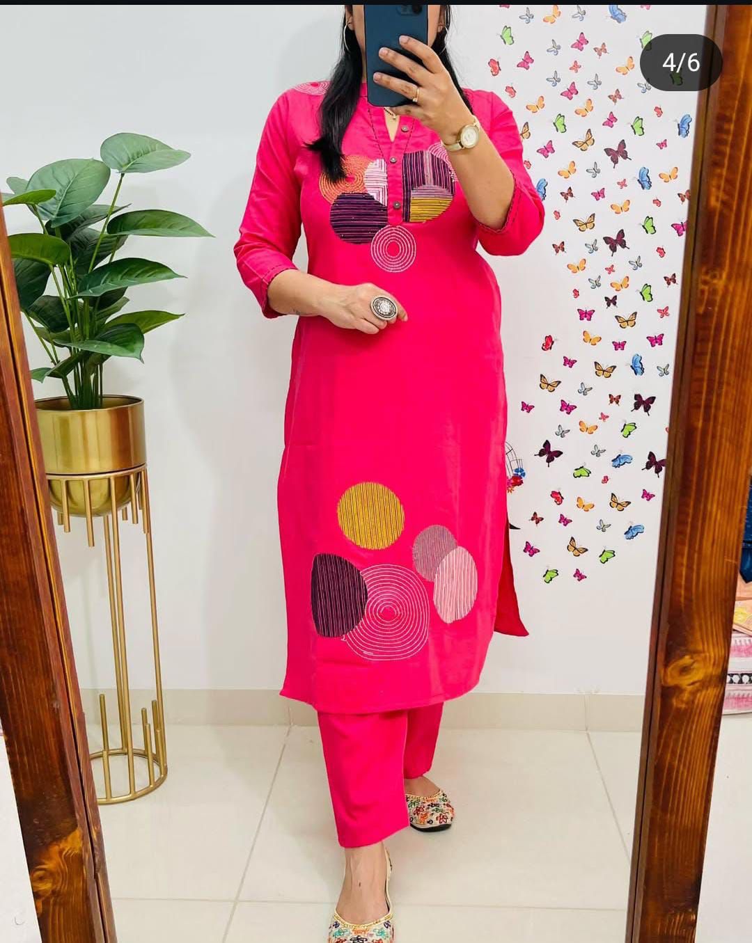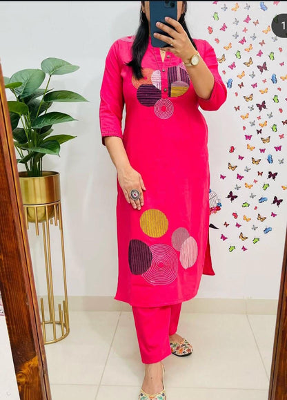 Experience the perfect blend of comfort and style with our elegant embroidered cotton kurti set. Crafted from breathable cotton, this ensemble is designed to keep you comfortable all day long. The kurti is beautifully adorned with intricate embroidery, adding a touch of timeless sophistication. Paired with practically designed pant that feature a convenient pocket, this set is as functional as it is fashionable.
