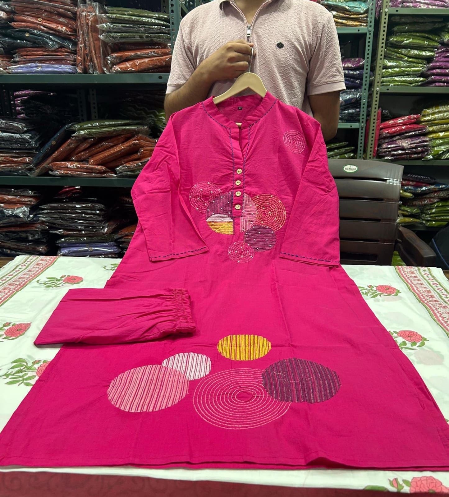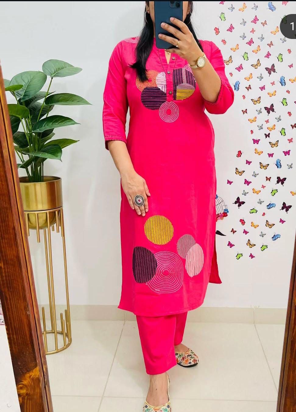 - Work: Delicate and intricate embroidery on the kurti