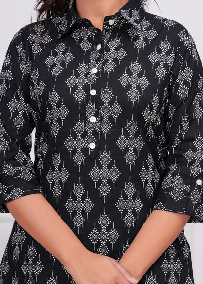 - Top Style: Short Kurti with an Elegant Printed Pattern
