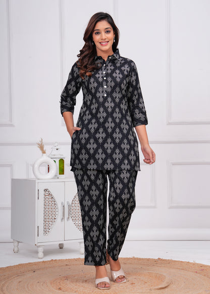 Printed Cotton Cord Set with Straight-Fit Pant & Short Kurti
