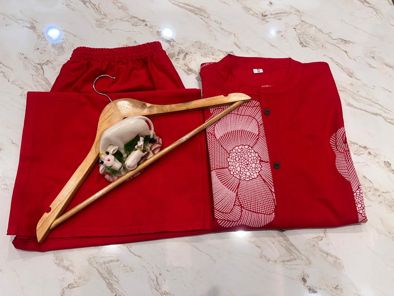 This versatile cord set seamlessly blends traditional charm with modern silhouettes, making it perfect for a variety of occasions. The vibrant floral print adds a touch of feminine grace, while the relaxed fit ensures you stay comfortable without compromising on style. Whether you're heading to a casual brunch, a festive gathering, or a day at the office, this cotton co-ord set promises a polished and fashionable look.