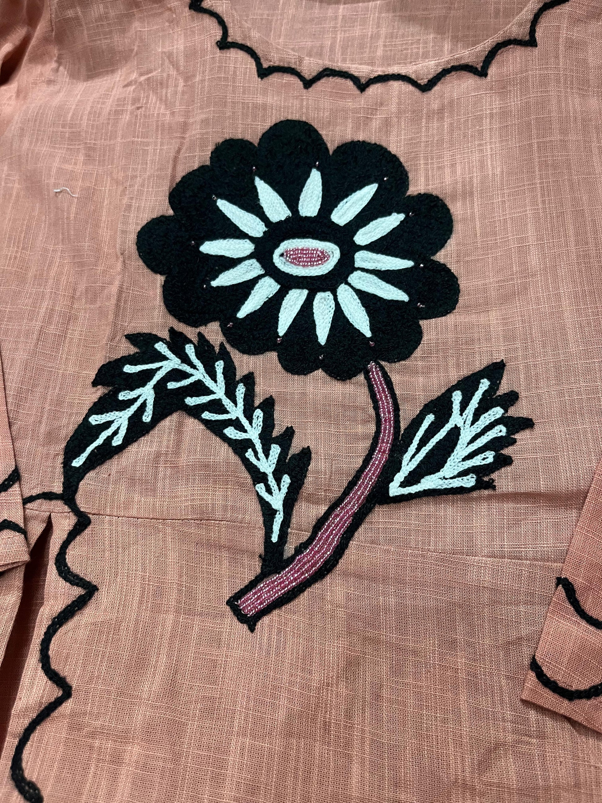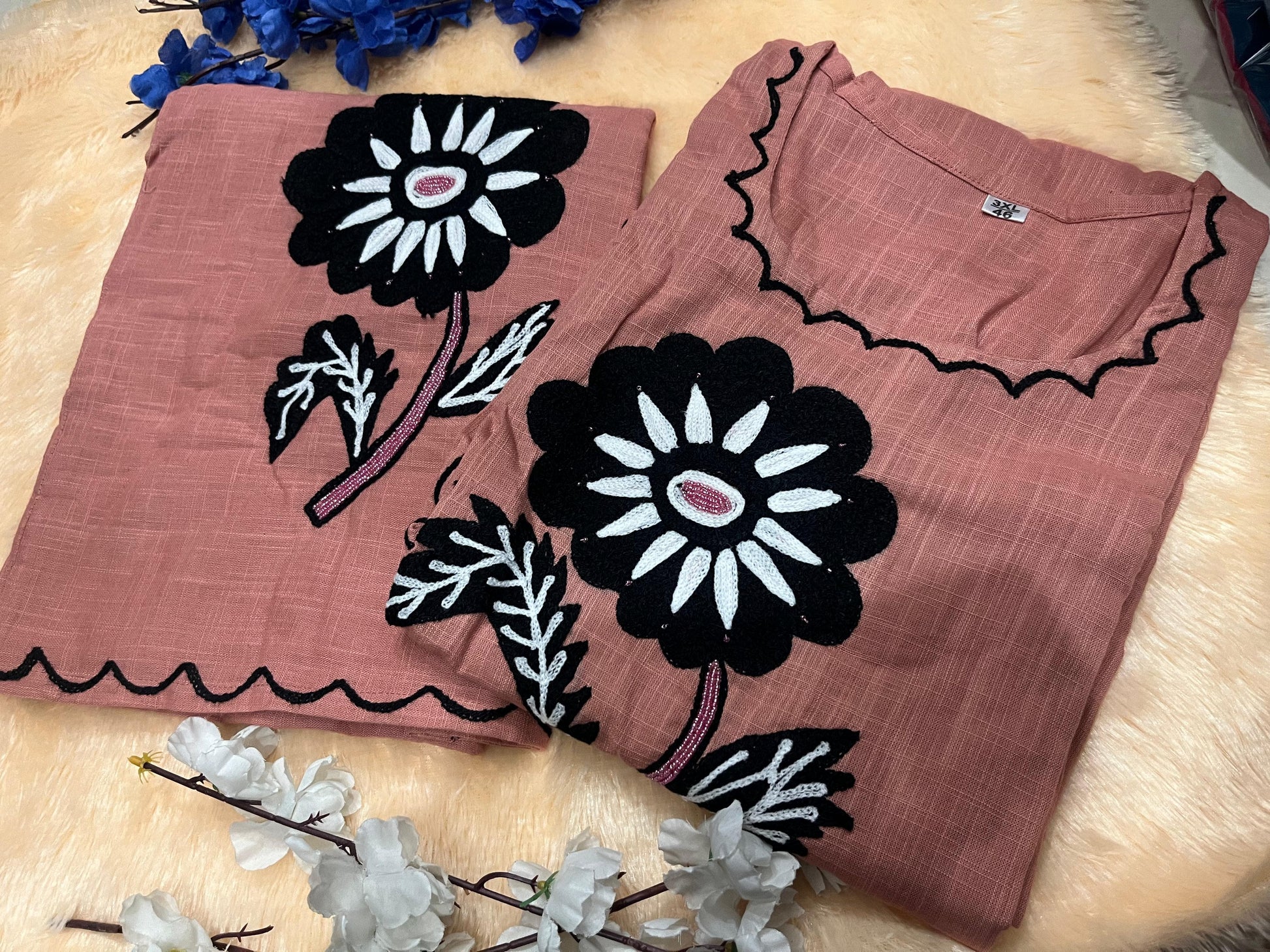 Cotton Slub Embroidered Kurti Pant Cord Set with Adda Beads Work