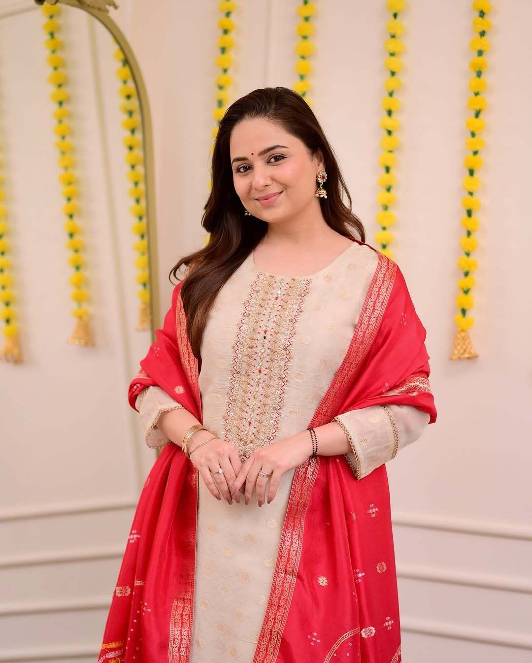 - Matching Jacquard dupatta with elegant woven patterns