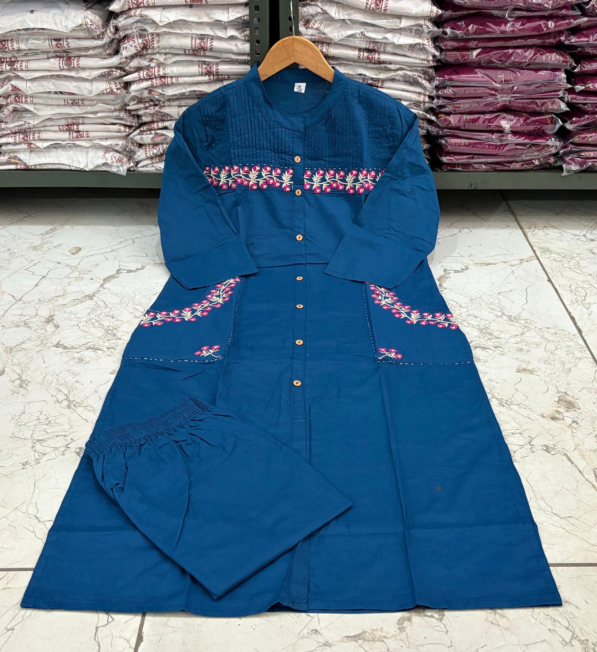 Cotton Kurti with Embroidery & Pant | Pocket Style Kurti Set