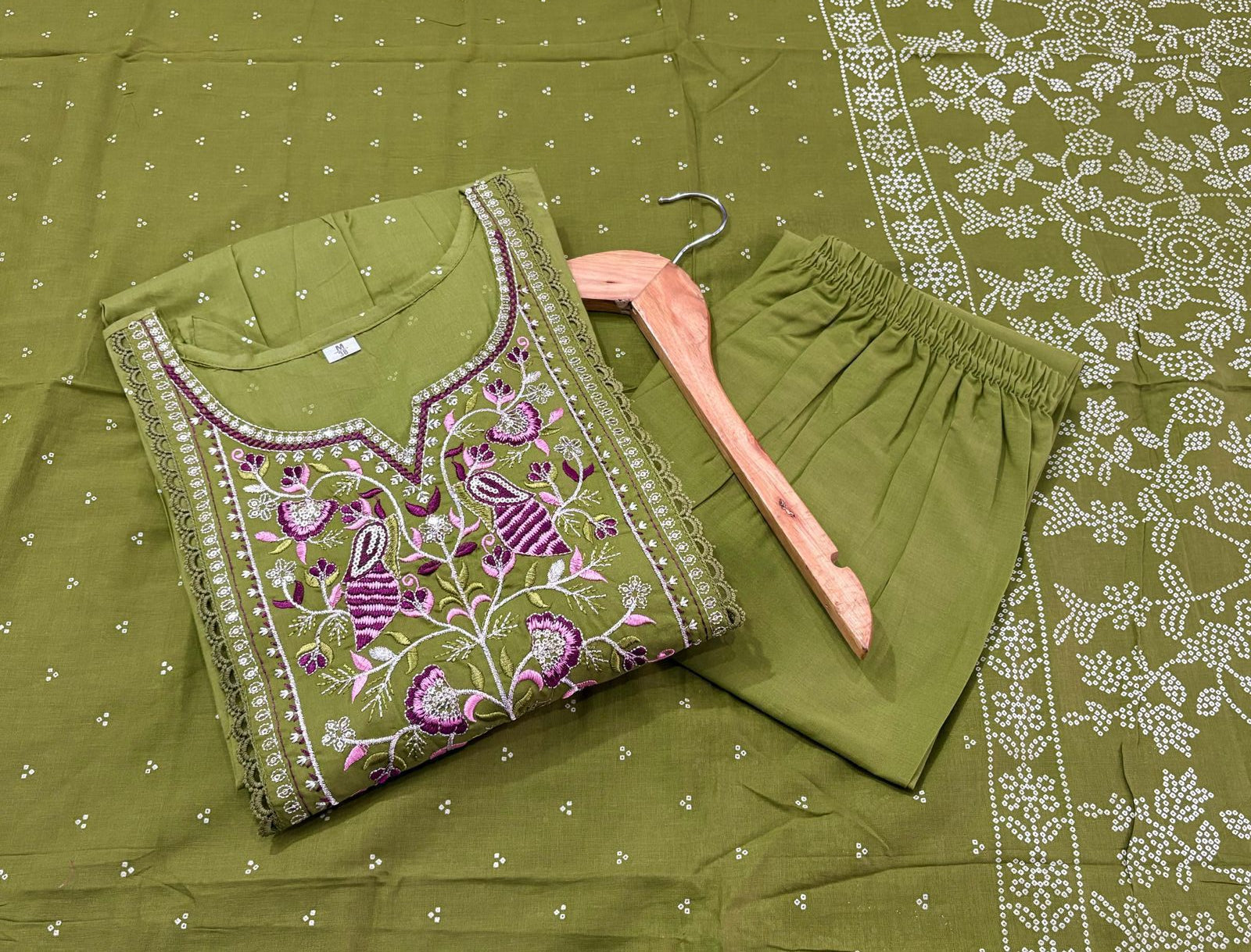 Flared Anarkali Kurta Set with Cotton Pant & Malmal Dupatta – Embroidered