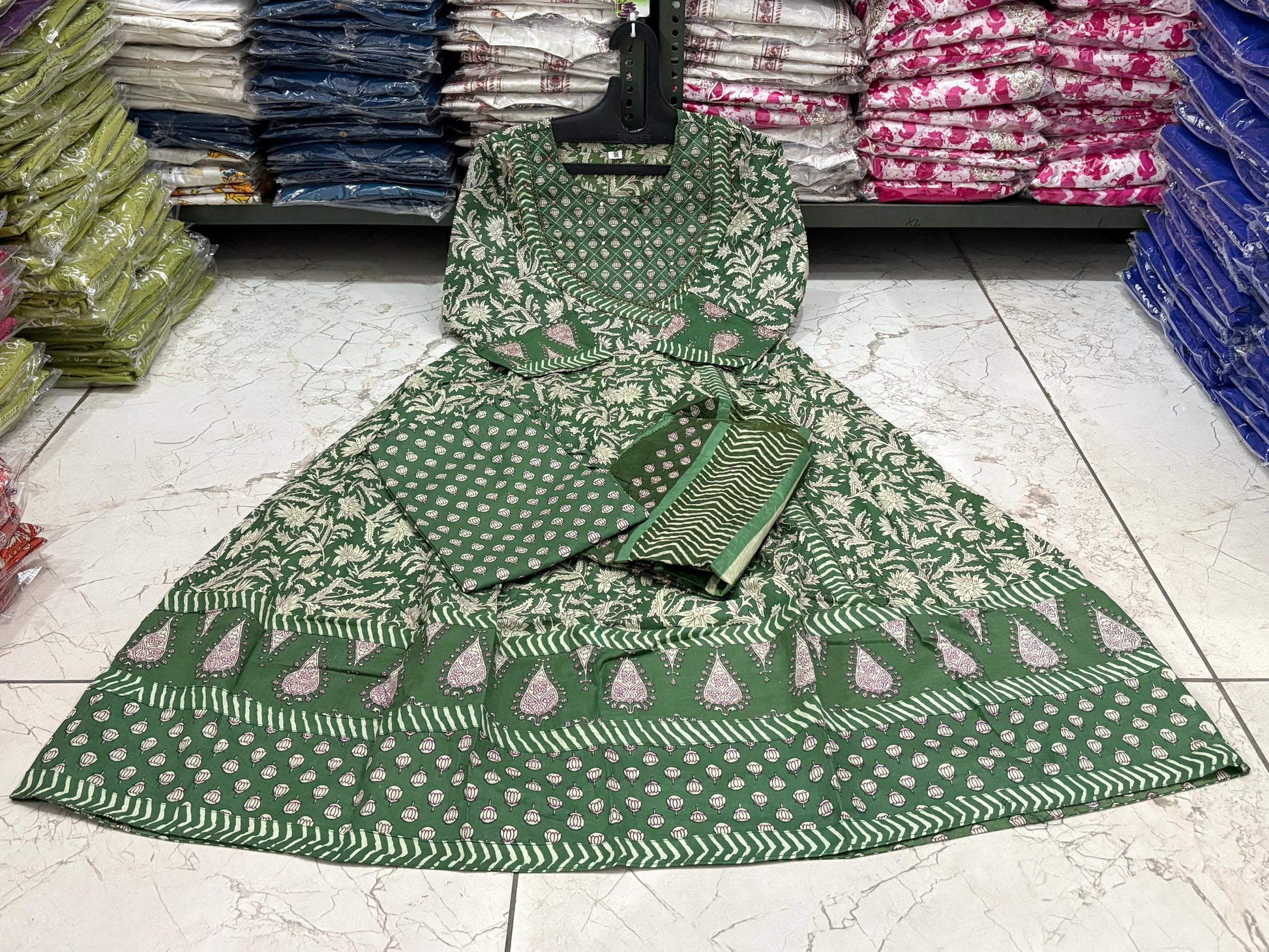 Elevate your ethnic wardrobe with this beautifully crafted Cotton 3-piece Angrakha Anarkali Suit Set, designed with intricate detailing and premium fabrics for an elegant festive look.
