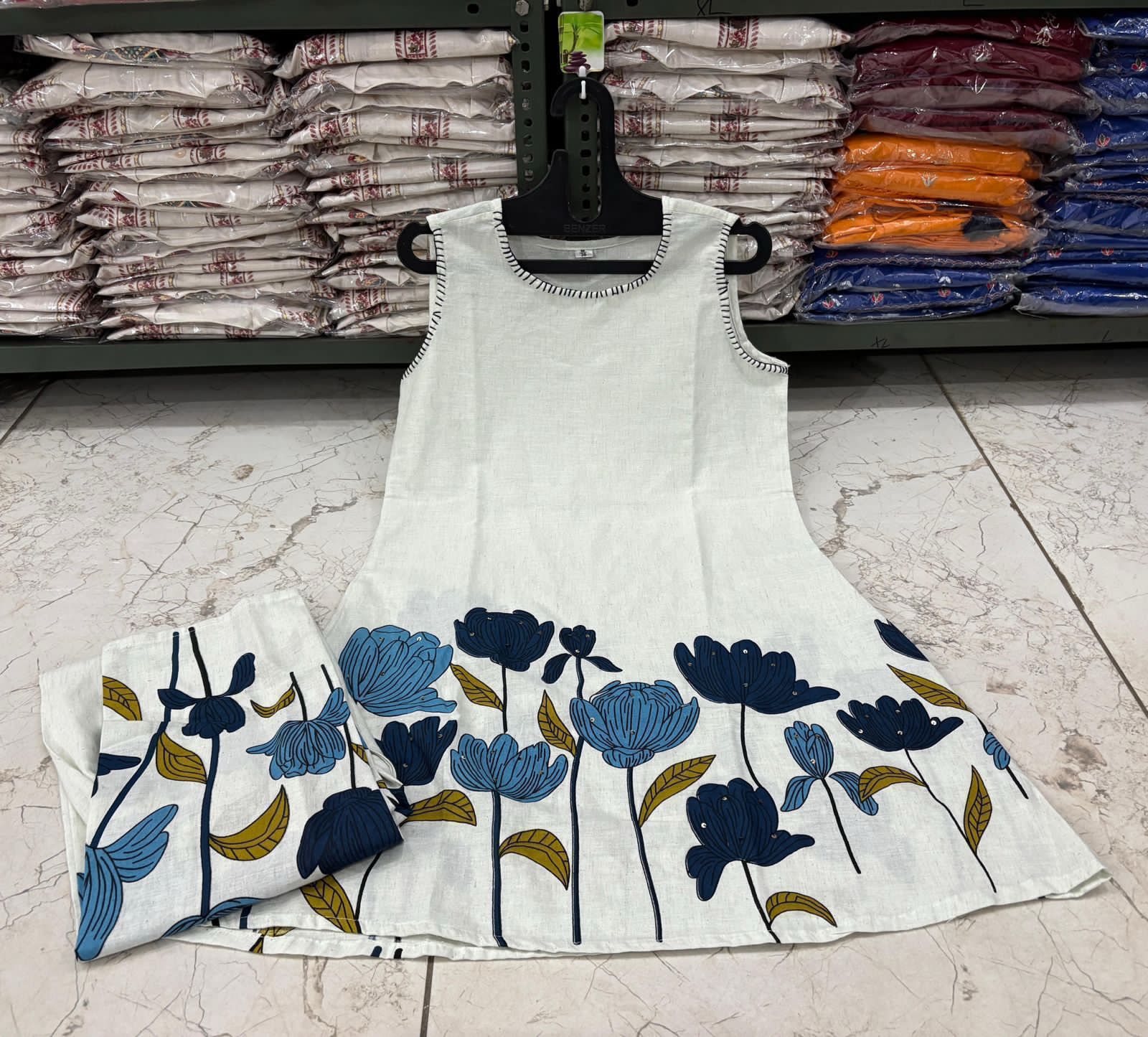 Cotton Flex Printed Kurta Set with Kantha Work & Trouser