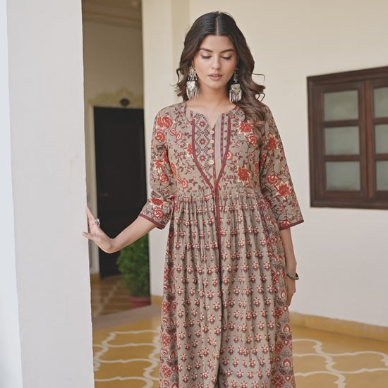 Chocolate Cotton Readymade Kurta with Palazzo Set | Full Sleeve Flared Kurta