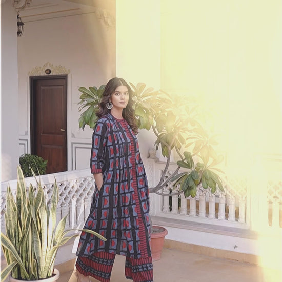 Blue Indigo Cotton Kurta with Plazo Set – 3/4 Sleeves