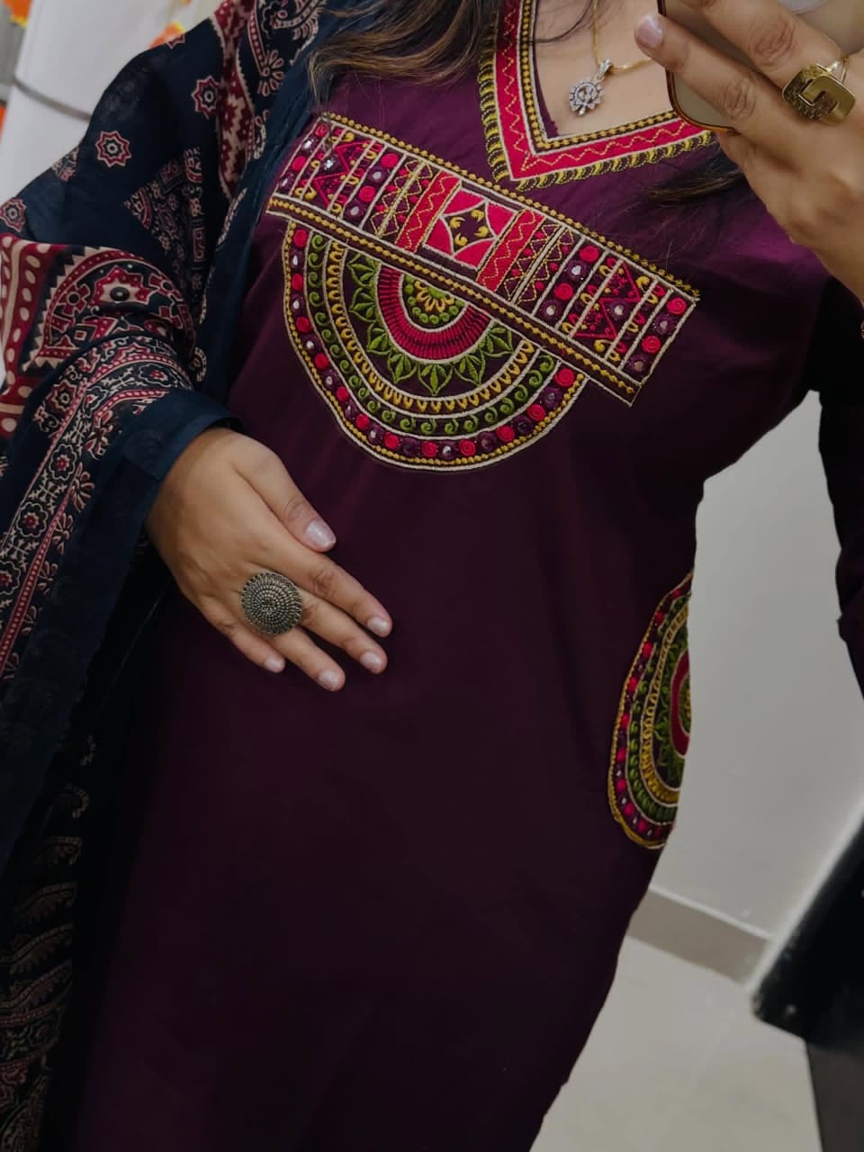 Embroidered Cotton 60x60 Kurti Pant Dupatta Suit Set