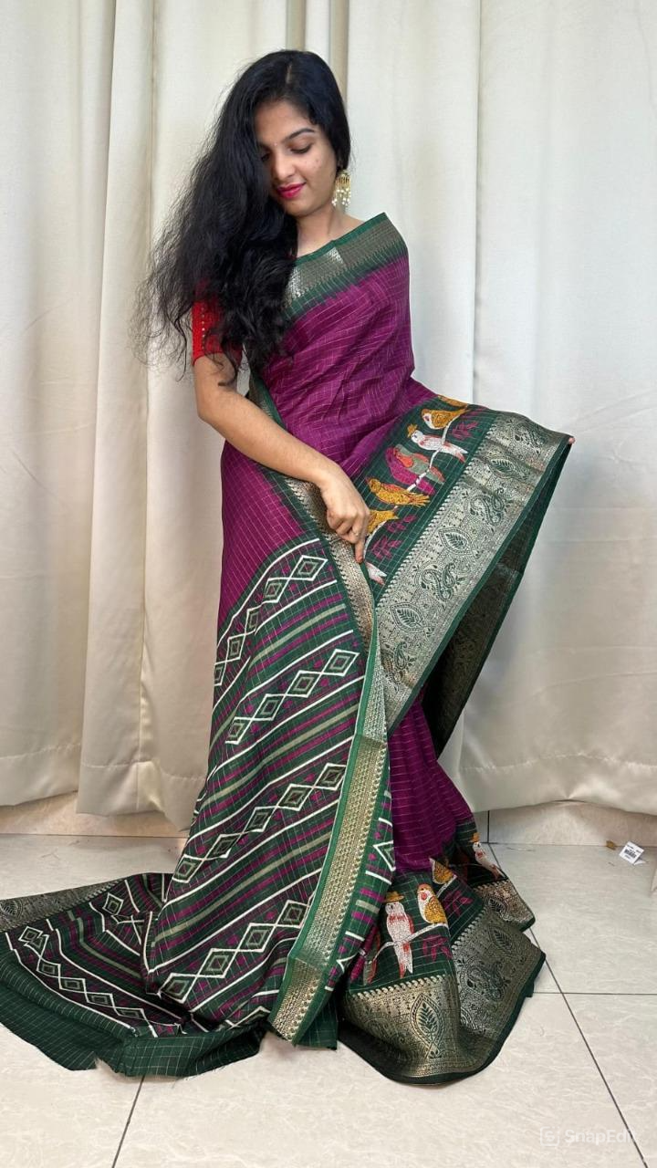Dola Silk Saree with Jari Chex Design & 9" Jacquard Border (Running Blouse Included)