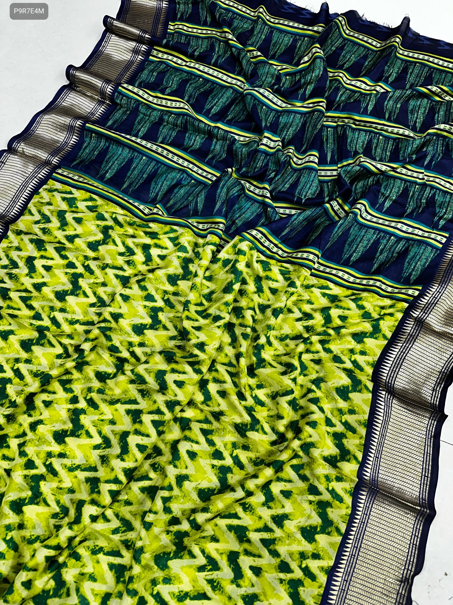 - Effortless Elegance: This stunning Dola Silk Saree exudes timeless grace with its rich, lustrous texture and vibrant colors.