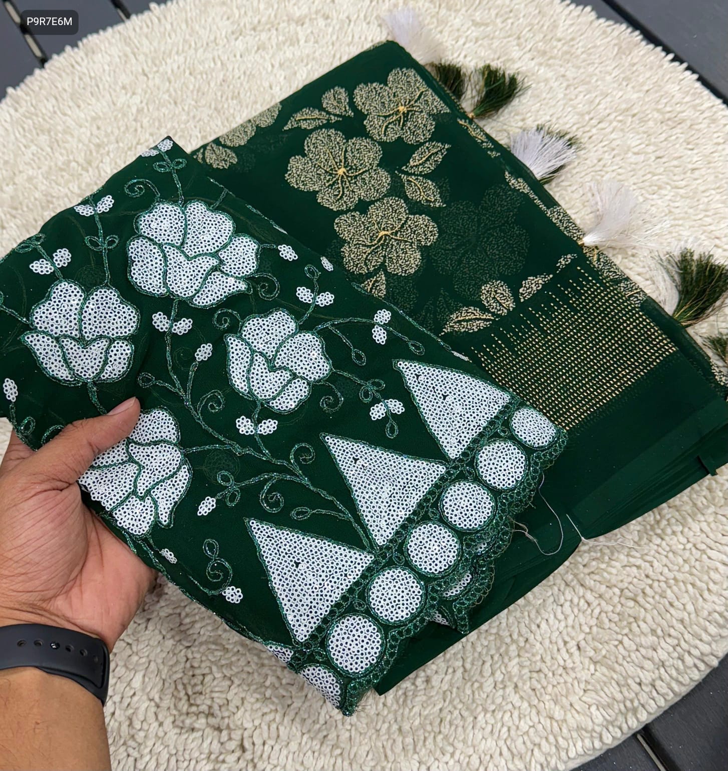 Georgette Chiffon Saree with Smoke Work & Sequin Embroidered Blouse