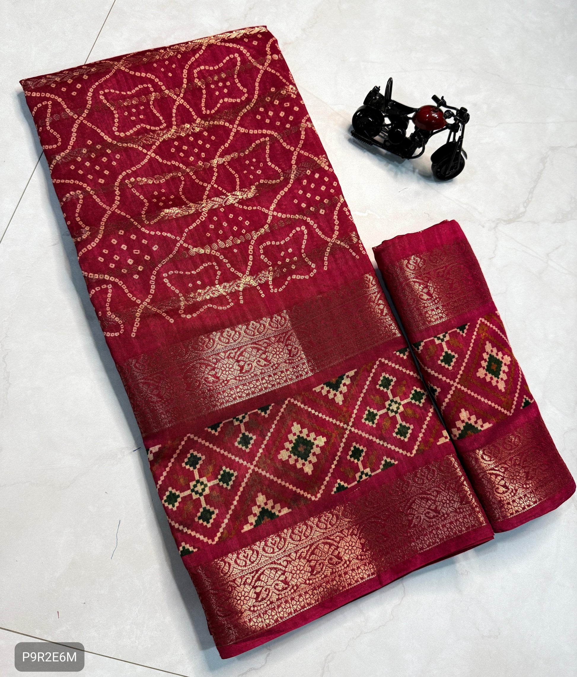 Leheriya Candy Cotton Silk Saree with Jacquard Border & Running Blouse Piece