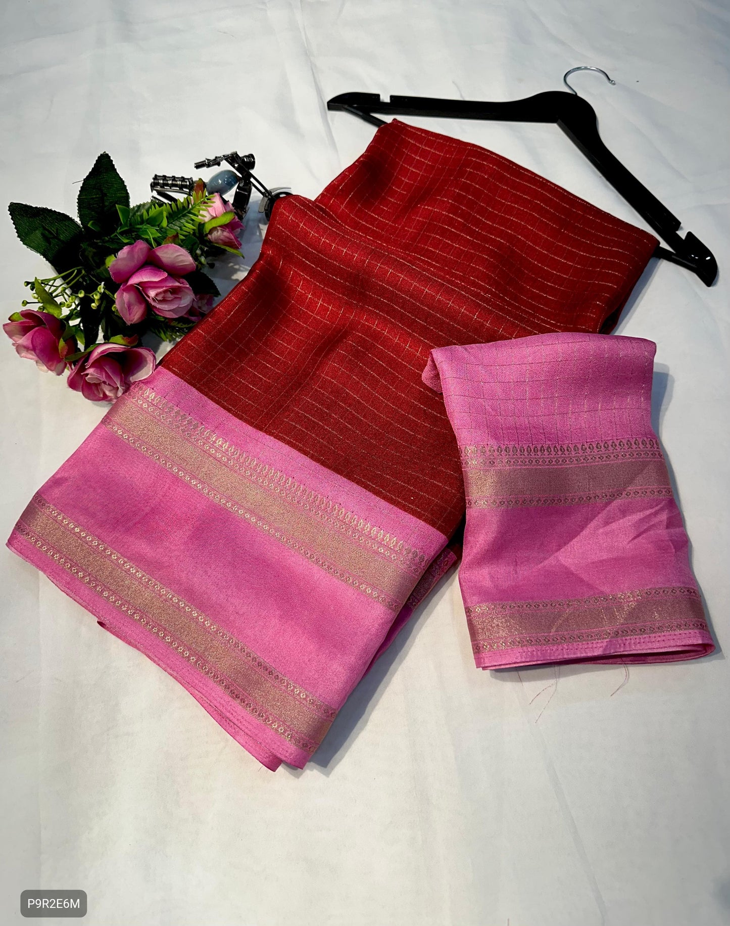The body of the saree features intricate weaving, a testament to the skill of our master weavers. Each thread tells a story of heritage and dedication, creating a textile that is both a work of art and a wearable masterpiece. The true highlight of this saree is its unique two-tone padded border, which adds a contemporary touch to the classic design. The dual-color play creates a captivating visual effect, while the soft padding lends a beautiful structure and fall to the drape.
