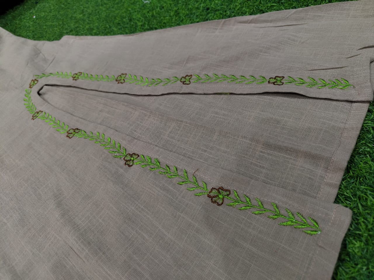 Elevate your ethnic style with this elegant A-line Cotton Slub Kurti Plazo Set. Designed with a front slit, embroidery work, and a comfortable plazo, this outfit is perfect for casual and festive wear.