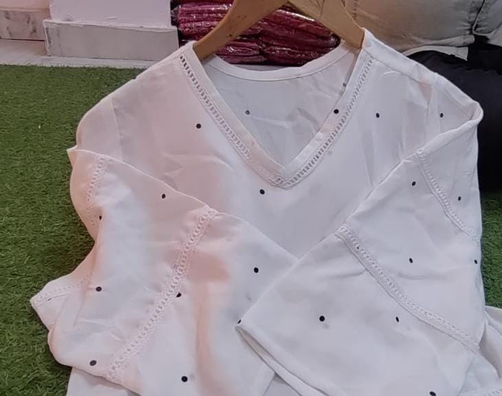 Whether you're stepping into a casual brunch or a social soirée, this top is your go-to choice. The classic polka dot pattern never goes out of style, and the comfortable rayon fabric ensures you stay at ease throughout the day. Embrace the fusion of contemporary fashion and traditional craftsmanship with our meticulously tailored, fully stitched polka dot rayon top.