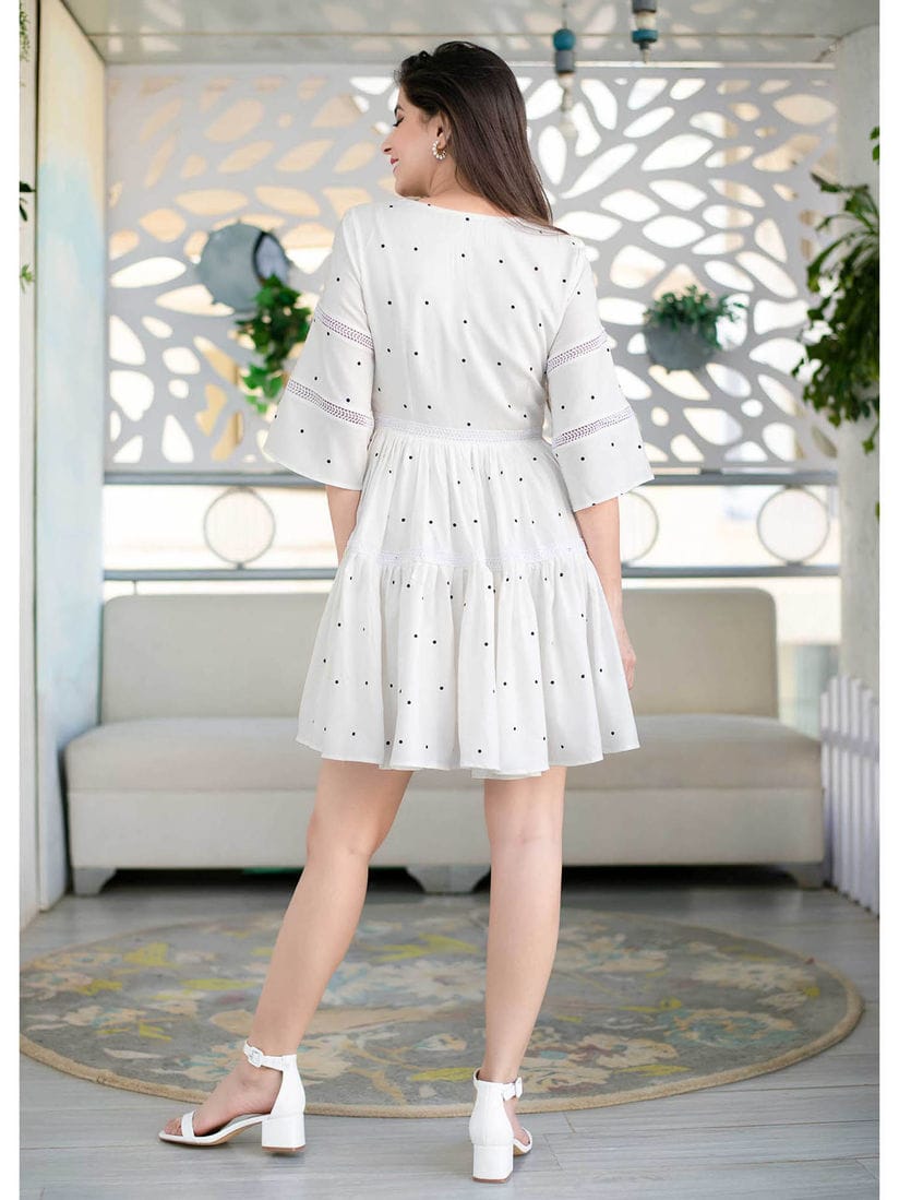 Polka Dot Print Rayon Top with Crosia Cotton Lace