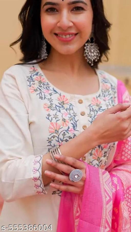 - Elegant embroidery on yoke, pant hems & sleeve hems