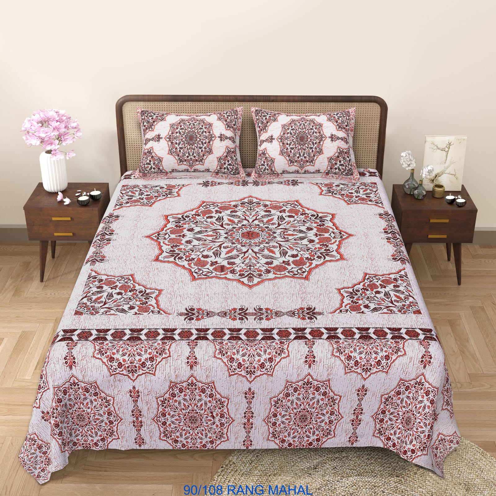 Cotton-Viscose Autoloom Bedsheet (90×106 inch) with 2 Zipper Pillow Covers