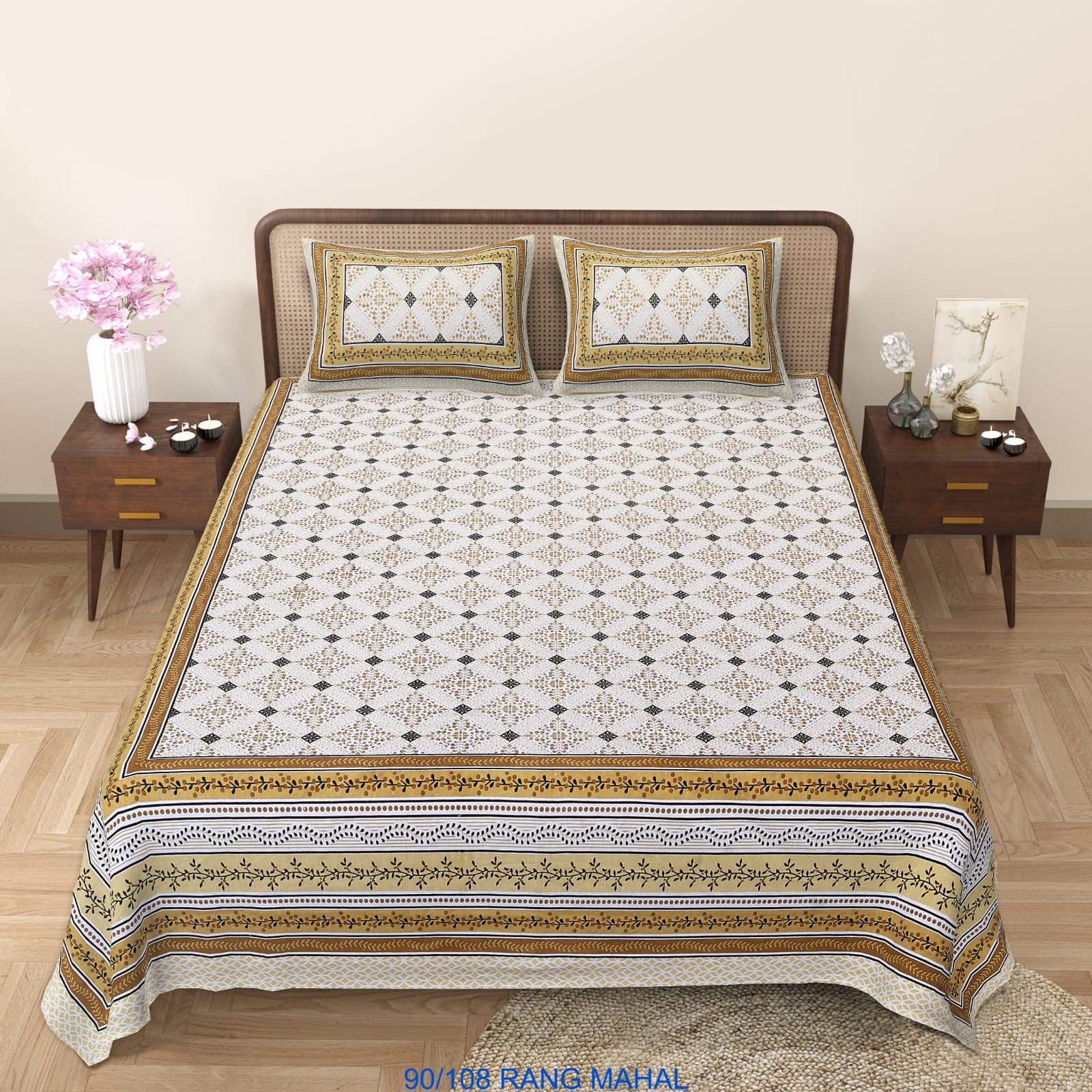 Cotton-Viscose Autoloom Bedsheet (90×106 inch) with 2 Zipper Pillow Covers