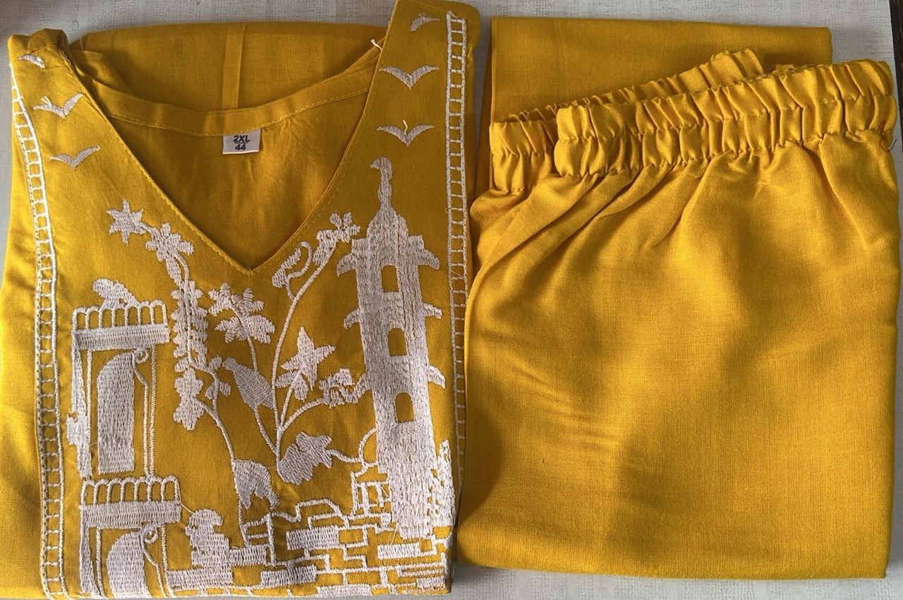 Rayon Embroidered Top with Palazzo Pant Set