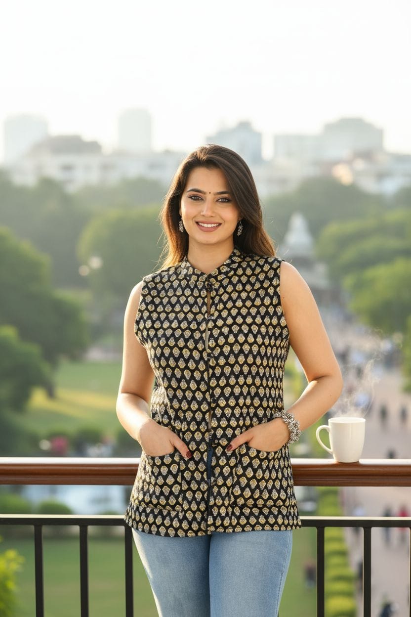 Jaipuri Quilted Reversible Cotton Jacket with Kapas Filling – 28 Inches