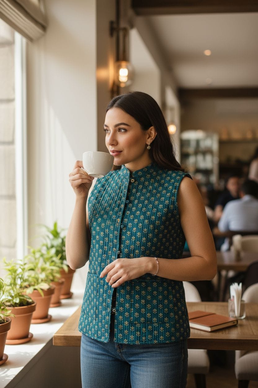 Jaipuri Quilted Reversible Cotton Jacket with Kapas Filling – 28 Inches